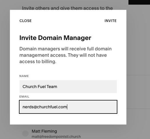 STEP 4: Click on Invite Domain Manger (or it may say Invite Contributor)