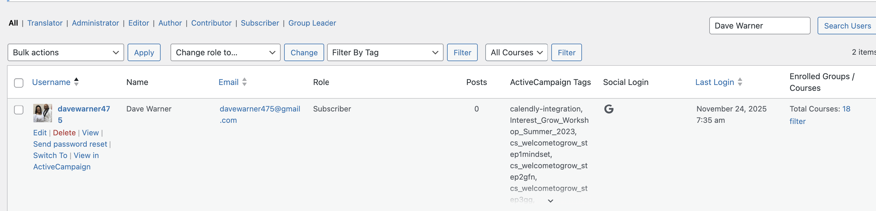Use the search bar to find a specific customer by name or email.